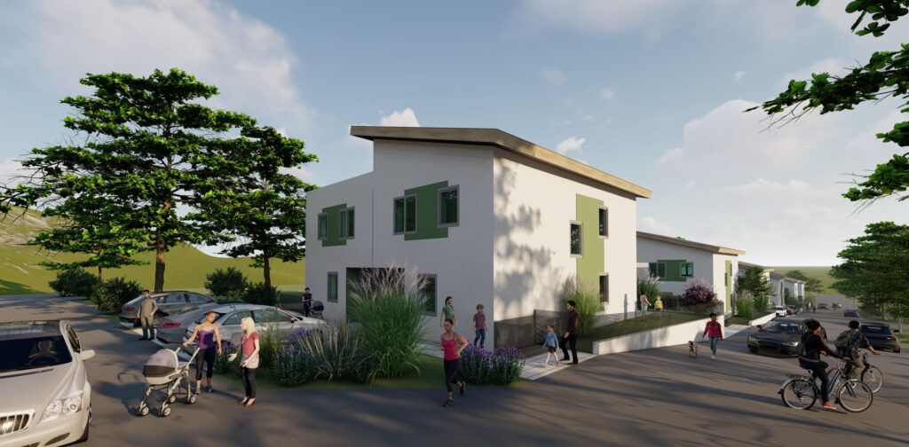 Wir errichten hier für Sie insgesamt 22 moderne, schlüsselfertige 2- bis 4-Zimmer-Wohnungen (teilweise „Junges Wohnen„) und 8 Reihenhäuser in Miete (Baurecht). Durch die Anordnung der Gebäude entsteht ein attraktiver Freibereich mit unterschiedlichen Themenbereichen, wie zwei Spielplätzen und Sitzgelegenheiten, die zur Steigerung der Wohnqualität beitragen. Alle Wohneinheiten verfügen außerdem über großzügige, private Außenbereiche in Form von Eigengärten, Balkonen oder Dachterrassen. Für die gesamte Anlage stehen ausreichend PKW-Abstellplätze im Freien zur Verfügung.