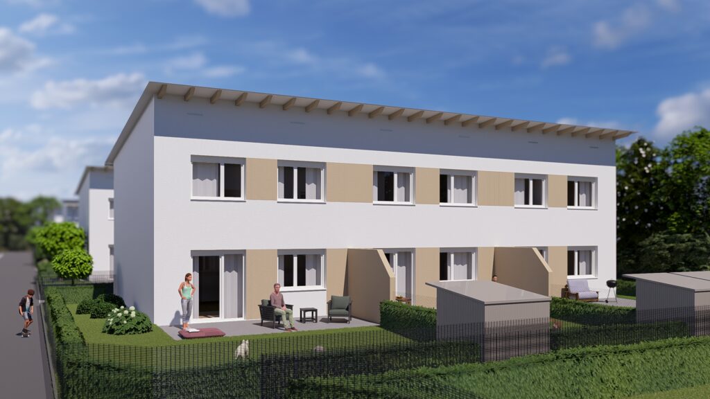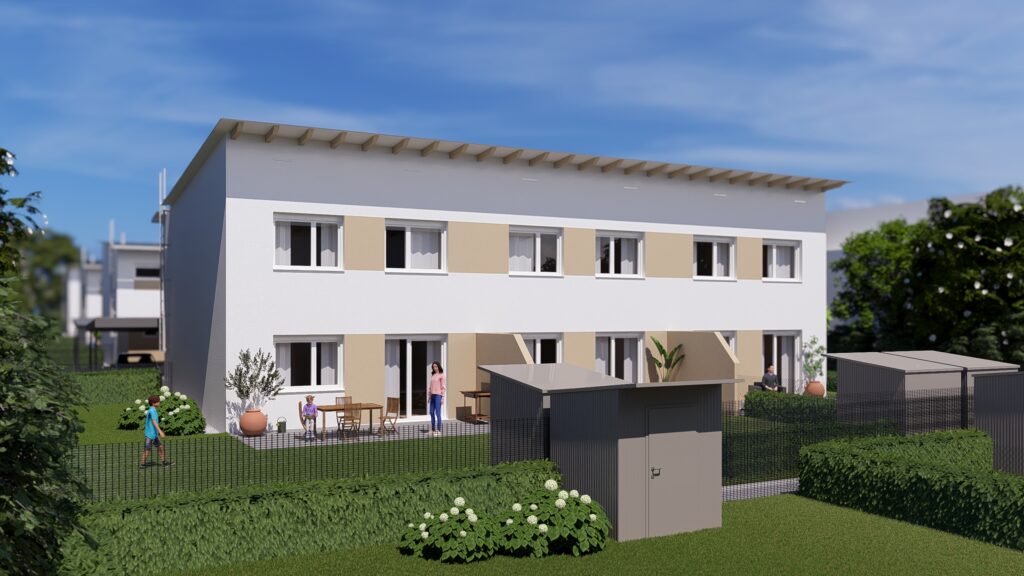 „Gemeinsam Zuhause Wohnen“ repräsentiert eine moderne und nachhaltige Wohnentwicklung, die sich harmonisch in die bestehende Bebauungsstruktur der Gemeinde einfügt. Der Fokus liegt auf einer zukunftsorientierten Mischung aus Wohnbau und Reihenhäusern, welche die Bedürfnisse verschiedener Altersgruppen berücksichtigt. Dadurch schafft dieses Projekt ein ideales Umfeld für Familien, Paare und Senioren, die in einer naturnahen und gut erschlossenen Umgebung leben möchten. Die großzügigen Grünflächen und die hervorragende Anbindung an die Infrastruktur machen diese Wohnanlage zu einer attraktiven Wohnlösung für Generationen.
